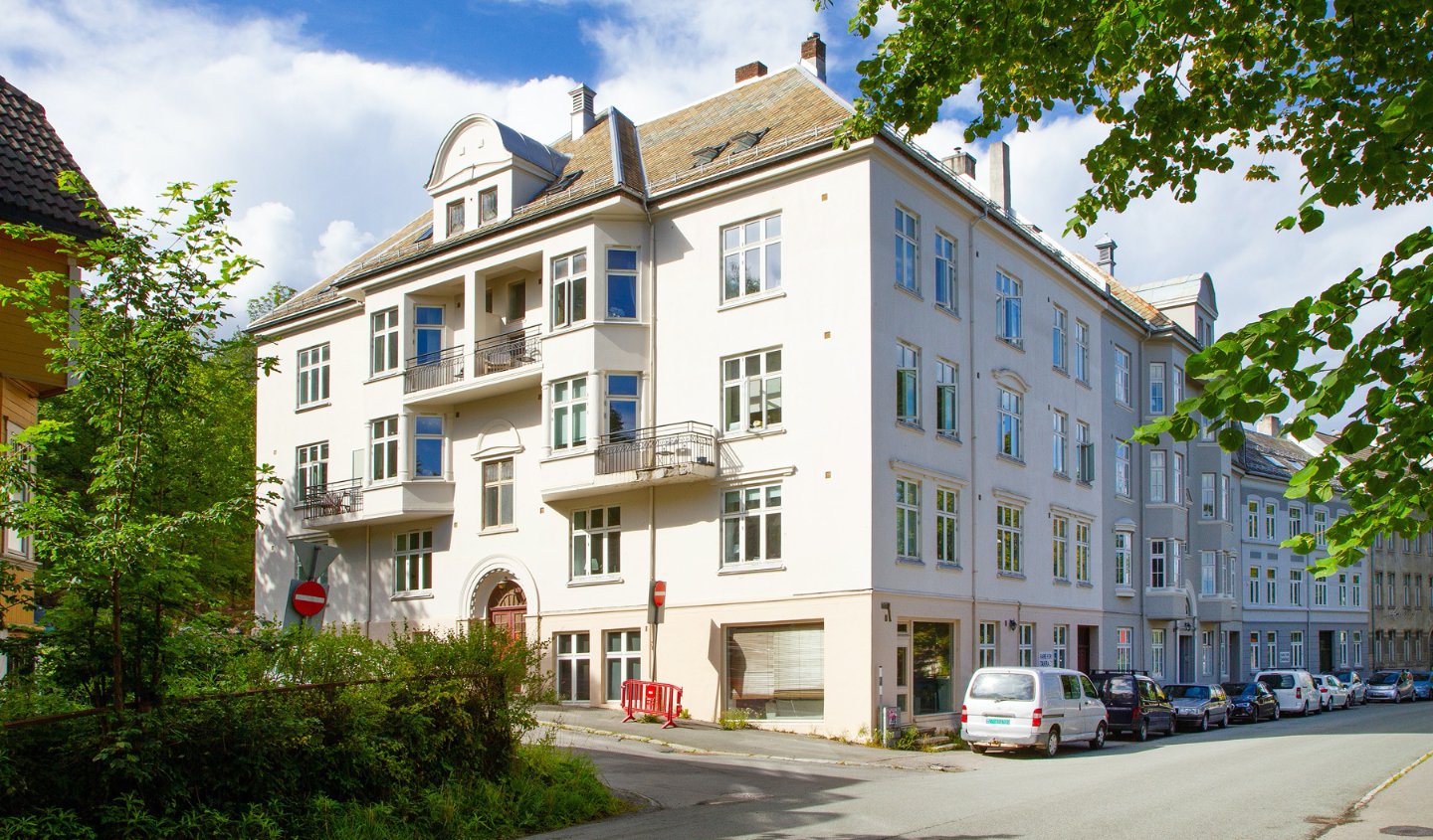 Bygården befinner seg på hjørnet mellom Osloveien og Bergsligata i Ila, ved foten av Steinberget. Bygården inngår i et større kvartal med mange sjarmerende og godt vedlikeholdte murgårder fra første del av 1900-tallet. Bygningsfasaden er preget av en tradisjonell jugendstil. Tidligere huset første etasjen i bygården et lefsebakeri, nå er det boliger i hele den sjelfulle bygården.